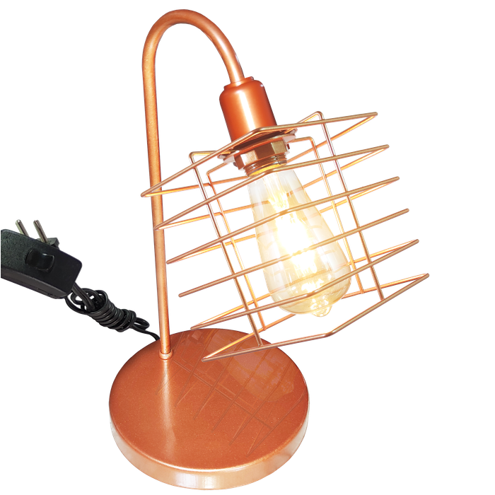 Abajur de Quarto Luminária Industrial Aramado Boxy Cobre