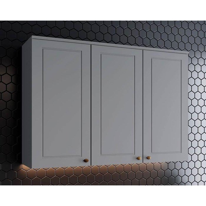 Armário Aéreo p/ Cozinha Americana c/ 3 Portas 120cm Cinza - Henn