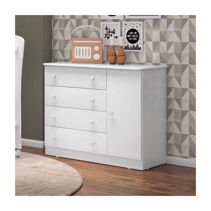 Cômoda Infantil 1 Porta 4 Gavetas Doce Sonho Branco