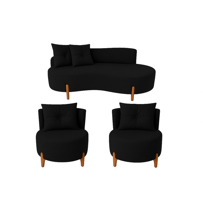 Conjunto 2 Poltronas + Sofá Curvo Orgânico Veludo Preto - Montanaris Decor
