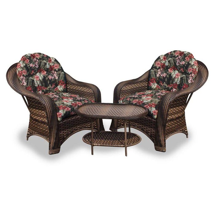 Conjunto de Poltronas Fibra Sintética Janaína - 2 Poltronas + 1 Mesa Centro - Tecido Maui Preto