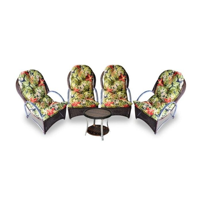 A estrutura em alumínio envolto em fibra sintética garante a qualidade de nossos produtos. Nossas almofadas são revestidas com tecidos Acquablock, compostos por 72% algodão e 28% poliéster, com acabamento impermeável. Confira todas as vantagens Acquablock aqui. Conjunto composto por: 4 Poltronas Dimensões A100 x L68 x C87 cm 1 Mesa de Centro Redonda - Altura 47 cm Dimensões A47 x D55 cm Por se tratar de confecção artesanal, as dimensões dos produtos podem sofrer variação. Cuidados na manutenção do seu móvel Material de fibra sintética é ideal para utilização em ambientes externos, necessitando apenas de pequenos cuidados para que seu móvel mantenha sua aparência como novo. O ideal é limpar as peças semanalmente, usando uma escova com cerdas macias molhada em uma mistura de água com sabão neutro ou pano úmido. Na sequência, deixe os móveis secarem naturalmente à sombra. Durante a higienização de sintéticos, respeite também o sentido das fibras e nunca aplique força demasiada para não comprometer a superfície do trançado. Nunca utilizar lavadoras de pressão sobre as fibras. As almofadas de assento e encosto são em tecido impermeável, que bloqueia líquidos, poeiras e fungos, não sendo aconselhável a permanência de estofados em ambiente externo, expostos a intempéries climáticas (chuva). Garantia Este móvel tem garantia de quatro (04) meses, se usado em condições normais, contra defeitos de fabricação. Essa garantia não cobre defeitos causados por uso inadequado ou abusivo, falta de cuidados, desbotamento natural dos tecidos ou riscos decorrentes do uso.