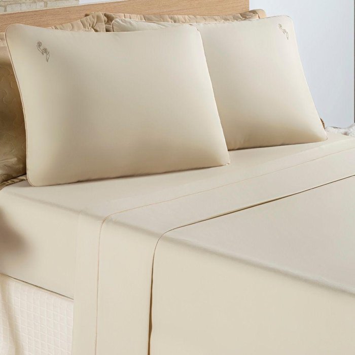 Jogo Cama Lençol Diana Casal Padrão Percal 200 Fios 100% Algodão 4 Peças - Cáqui