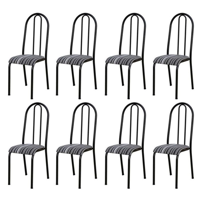 Jogo De 8 Cadeiras América Cromo Preto Listrado Artefamol