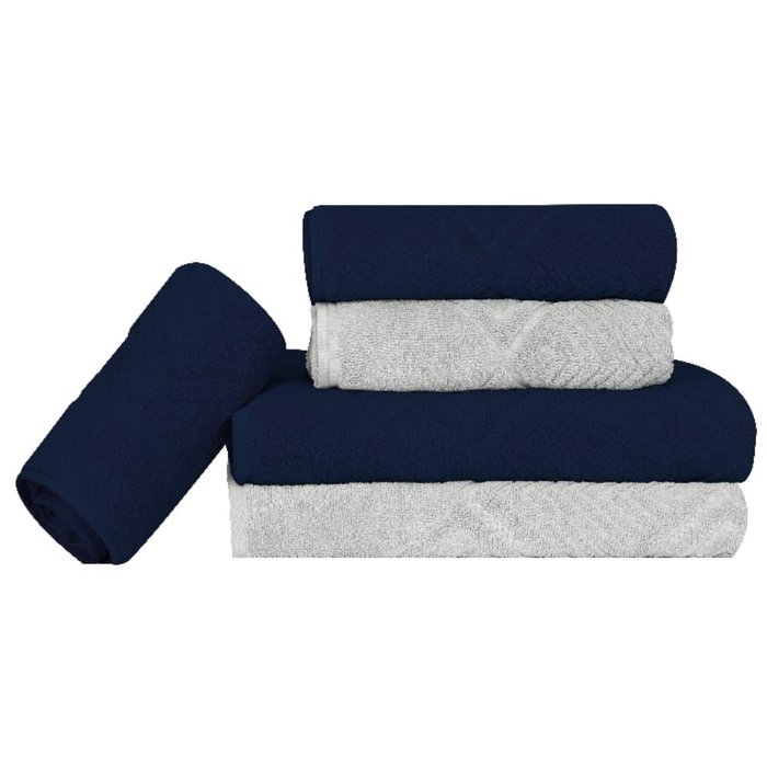 Jogo de Toalhas de Banho 100% Algodão 5 Peças Completo Max Sonhare Sultan Marinho e Prata Marinho/Prata