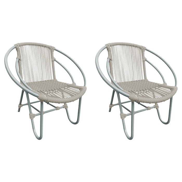 Kit 2 Cadeiras Decorativa Julia em Corda Náutica e Base em Alumínio Cinza/ Areia