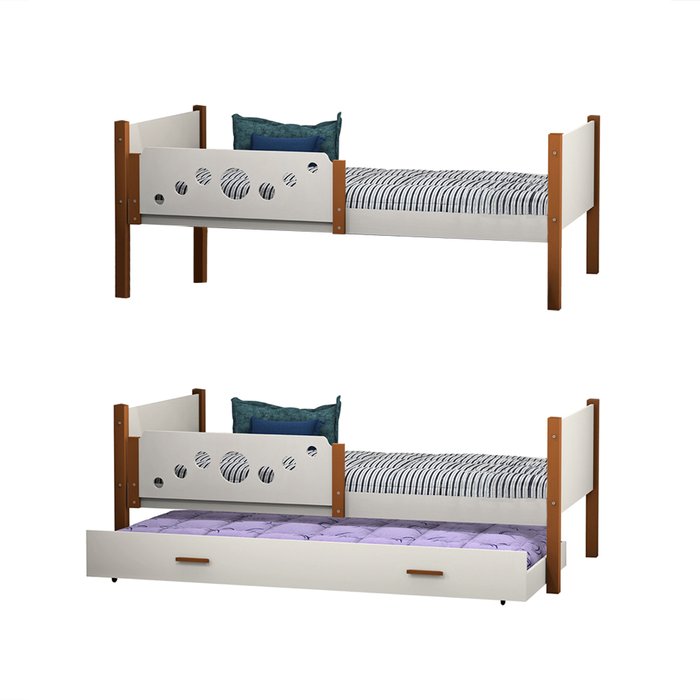 Kit 2 Camas Infantil Solteiro Star com 1 Cama Auxiliar - Branco/mel - Divaloto Móveis BRANCO