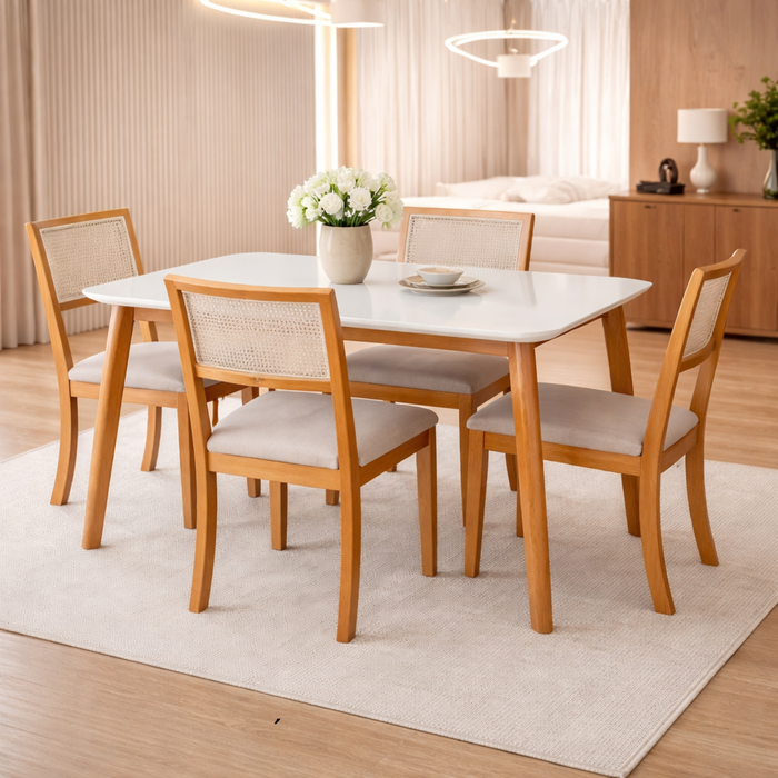 Kit 4 Cadeiras de Jantar Palha Estofadas Veludo Bege Encosto Tela Sextavada Rubi Madeira Maciça Mel Bege