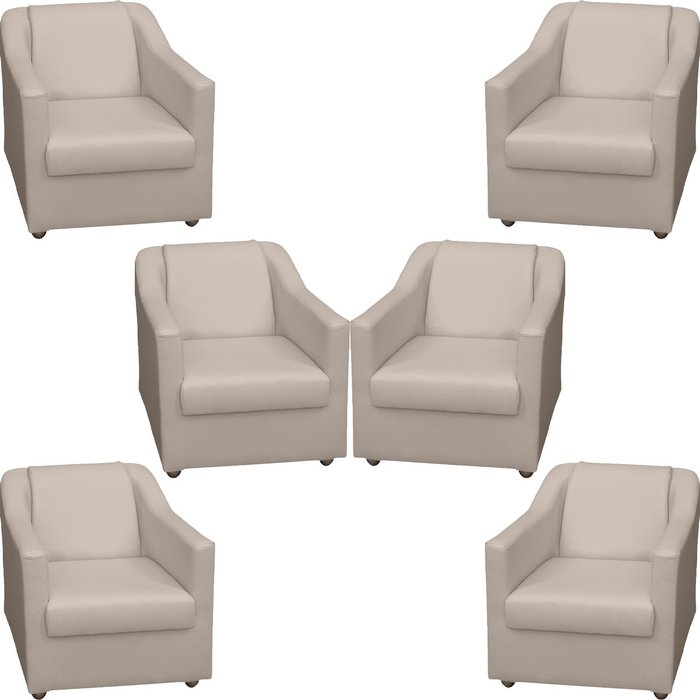 Kit 6 Poltrona Decorativa Para Sala De Espera Mila Recepção Escritório Consultório Corino Bege