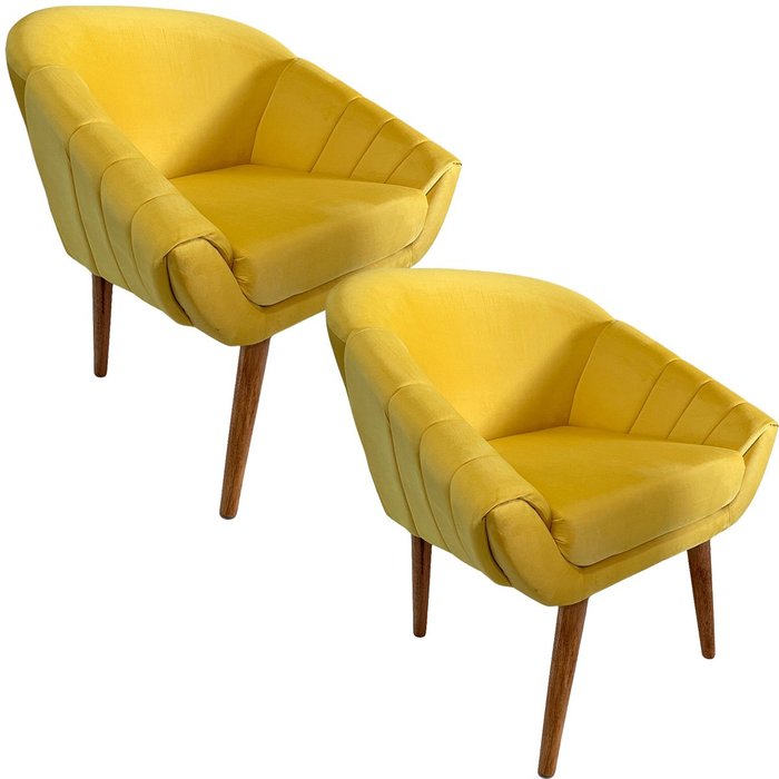 Kit Duas Poltronas Giovana em Sued Premium:amarelo Pés Madeira Claro