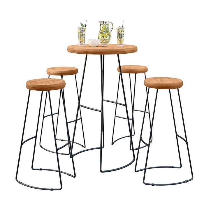 Kit Mesa Bistrô Redonda e 4 Banquetas Alta Astra Base Metálica - Pallazio
