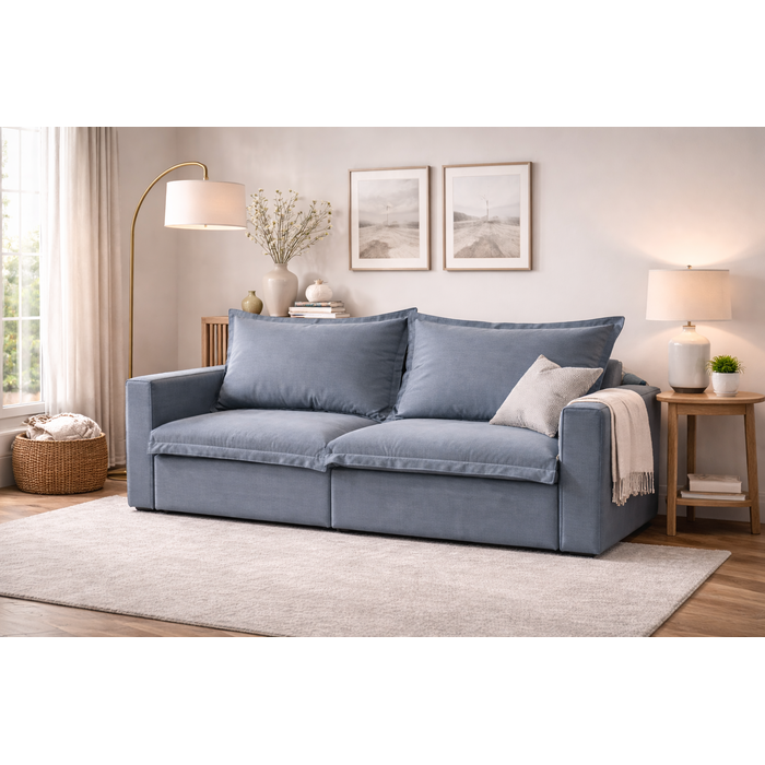 O diferencial do Sofá Cama Paris está nos detalhes delicados de babados nas almofadas laterais e no assento. Este toque romântico adiciona um charme especial ao design, transformando seu ambiente em um espaço acolhedor e sofisticado.