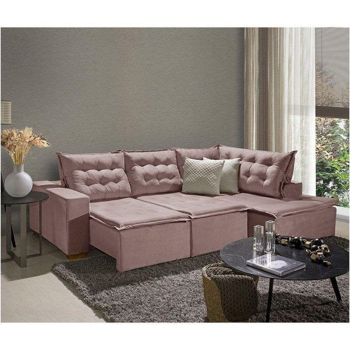 Sofá de Canto 5 Lugares 270cm Retrátil e Reclinável Rose Rose
