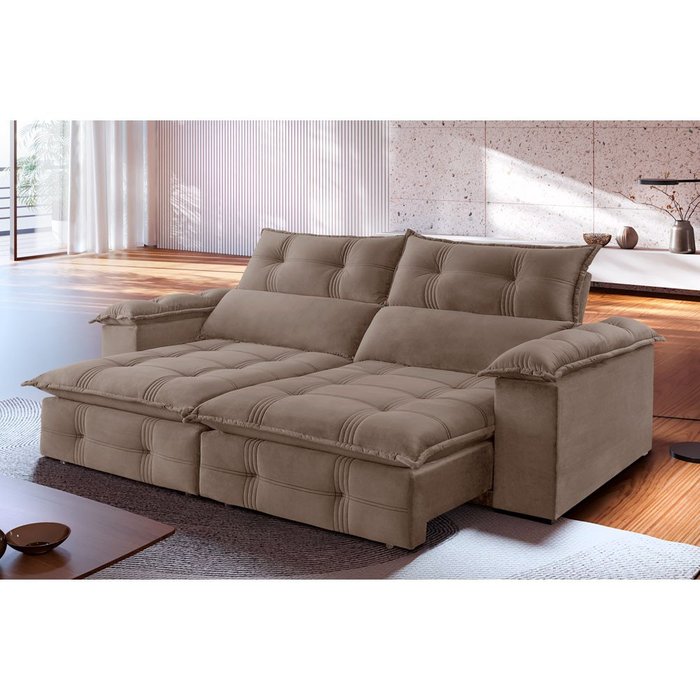 Sofá Retrátil e Reclinável Atlas 2,10m 03 Lugares Mola Ensacada Txr Bege